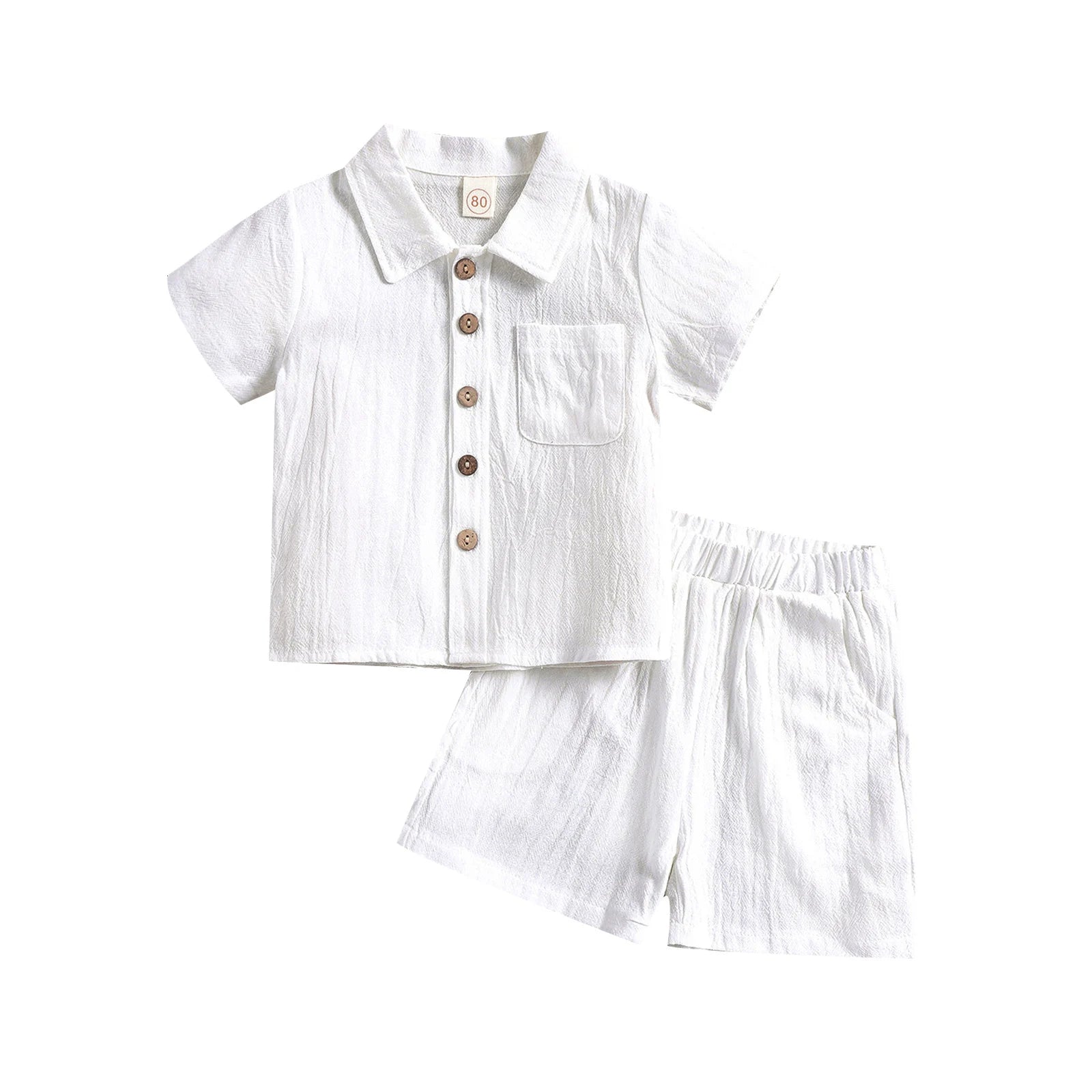 Simple & Stylish Summer Look:This adorable summer clothing set from Lioraitiin features a short-sleeved shirt with a classic turn-down collar and matching shorts, offering a clean and modern style that’s perfect for both baby boys and girls. The minimalist solid-color design adds a touch of effortless charm to your little one’s warm-weather wardrobe.