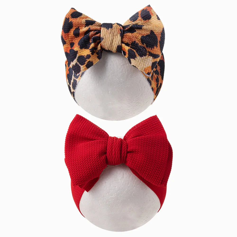 Adorable and Stylish Baby Headbands Set: Add a pop of color and personality to your baby's outfits with this 2Pcs/Set Leopard Flower Print Bullet Baby Headbands. Featuring bold patterns like leopard, flowers, dots, and rainbows, these headwraps bring charm and fun to your child's everyday style.