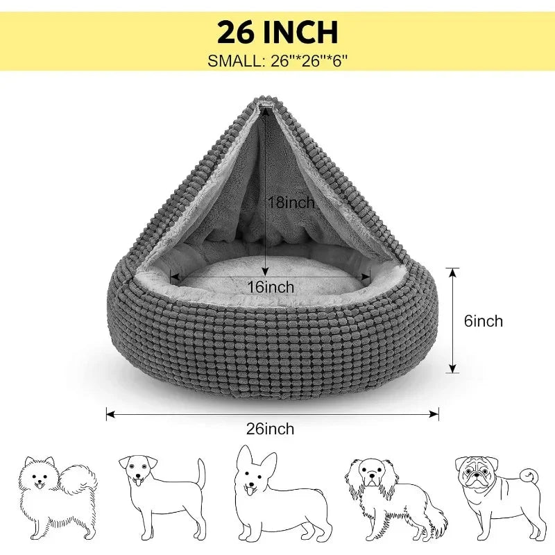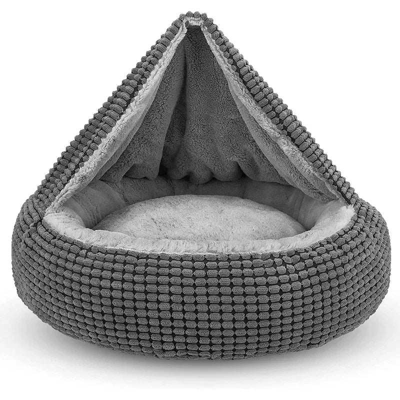 Hooded and Enclosed Design for Maximum Comfort: The attached blanket and hooded design of this bed create a secure, enclosed space where your pet can curl up and feel safe. The soft, plush material offers a sense of security, making it perfect for pets who like to nest and burrow in their beds.