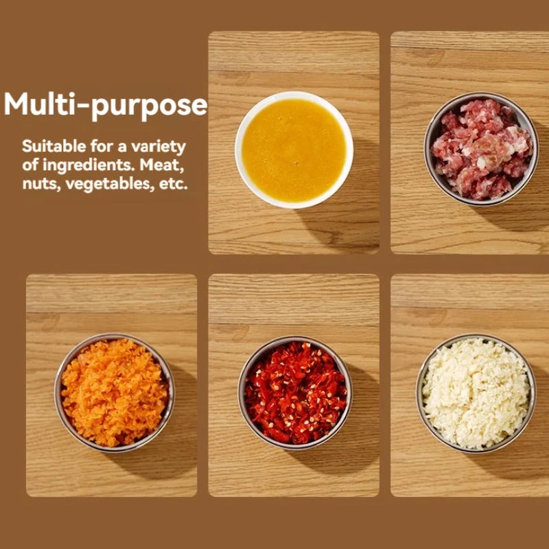 Safe & Easy to Clean: The chopper features a safety-lock lid to prevent spills, and all detachable parts are easy to rinse clean. Its compact design ensures minimal storage space, making it ideal for small kitchens or on-the-go use.